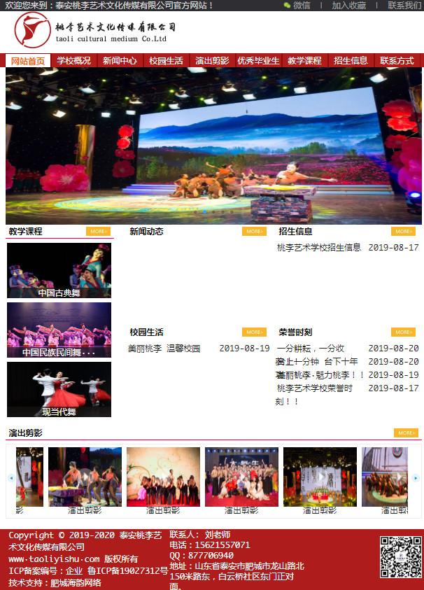2014年,我校被泰安市教育局评为“山东省学校艺术考试泰安考区优秀社会培训机构”;2018年被泰安市舞蹈家协会授予“泰安市舞蹈家协会突出贡献奖”。方案1: 网址: www.taoliyishu.com